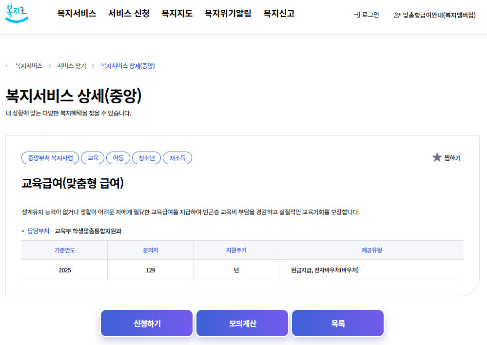 - ‘교육급여’ 검색 → 서비스 신청